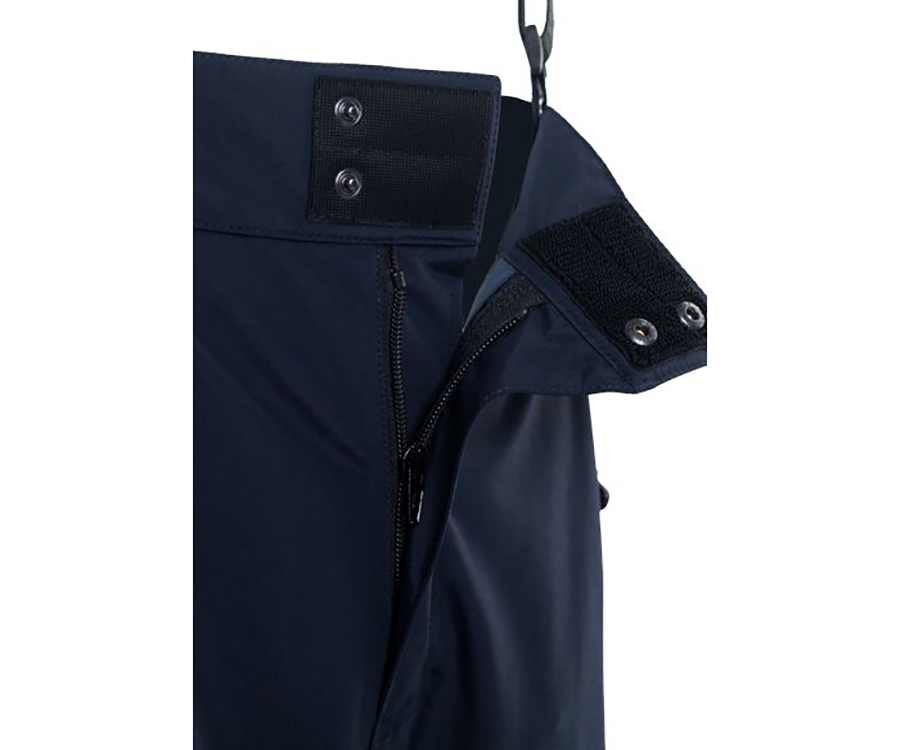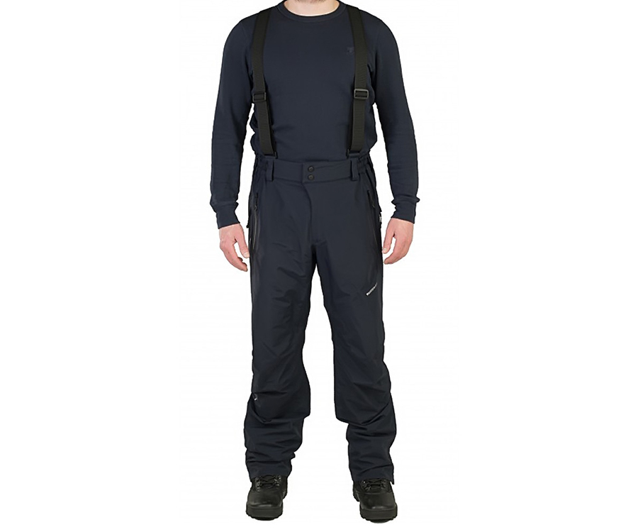 Мембранні штани з максимальним захистом від дощу та вітру. Штани мають високу посадку та спинку, з підтяжками, яка фіксується до штанів блискавкою та кнопкою й при необхідності легко відстібається. Зона застібки штанів застібається на блискавку з додатковою фіксацією на дві кнопки та має зовнішню та внутрішню волого-вітрозахисні планки. Дві бічні кишені на блискавках та бічні вентиляційні клапани на вологозахисних блискавках YKK AquaGuard®. Знизу, позаду штанин, вставлені розширювальні блискавки яки захищені волого-вітрозахисною планкою на липучці. Колінна зона має артикулярний крій та подвійний шар мембрани. Подвійний шар мембрани має також сіднична зона. Легка нейлонова підкладка дозваляє швидко та без перешкод одягати ці штани поверх іншого одягу.