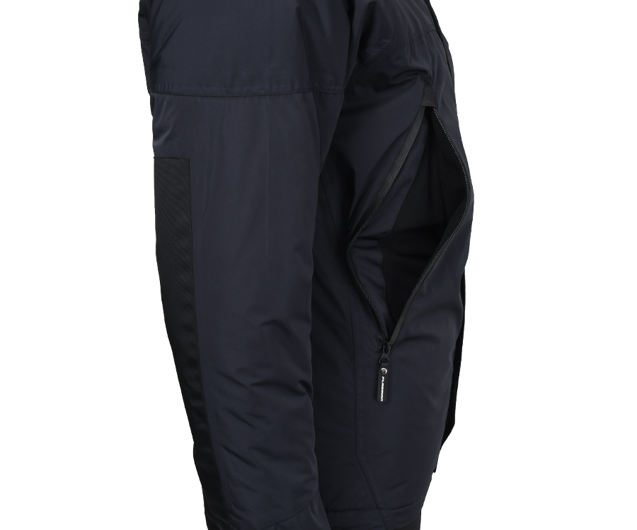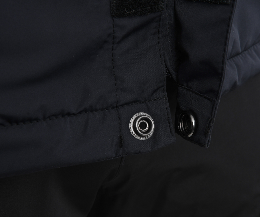 У куртці є 2 просторі утеплені бічні кишені на водонепроникних блискавках + 1 невеличка кишеня на лівому рукаві, а також 3 внутрішні кишені: грудна на блискавці і 2 нижні на липучці. Краї рукавів з утяжками на липучці та внутрішніми еластичними манжетами. Передбачено регулювання капюшона на липучці в потиличній частині та гумові затяжки-фіксатори з боків, а також зручна затяжка низу куртки. Штани мають 2 внутрішні кишені на блискавках і 2 накладних кишені з клапанами на липучці, низ штанин – на блискавці, з фіксаторами на липучці і внутрішніми манжетами на резинці. Також передбачено зручні регульовані підтяжки, високу спинку, поясні утяжки, широкі лямки під поясний ремінь. Штани костюма Shadow Catcher New Generation Dark Navy – чорного кольору, куртка – Dark Navy.