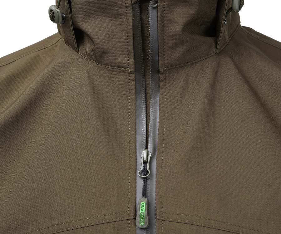 Carp Pro Rain Suit – легкий, комфортний і водонепроникний мембранний дощовий костюм нового покоління. Завдяки використанню інноваційних матеріалів і технологій, вищий рівень якості тепер доступний не тільки професійним спортсменам, а й риболовам-аматорам, які вирушають на риболовлю за будь-якої погоди. Мембранний матеріал костюму має ідеальне поєднання характеристик водонепроникності та дихаючих властивостей: він не продувається вітром, у ньому сухо під дощем. Анатомічний крій і легкість дощового костюма Carp Pro Rain Suit гарантують максимальну зручність під час активних переміщень. Проста система регулювання поясу та рукавів дає змогу адаптувати костюм під будь-яку фігуру й товщину піддягнутого одягу, а конструкція коміра й капюшона надійно захищають обличчя та шию під час будь-якого дощу й вітру. Штани виконано подібно до напівкомбінезона – на широких еластичних лямках. Їх зручно носити з будь-яким взуттям – від туристичних черевиків до гумових чобіт. Кишені водонепроникні й досить місткі, блискавки надійні, застібки довговічні. Одягнувши костюм Carp Pro Rain Suit, ви забудете за погану погоду та цілком зможете присвятити себе риболовлі!