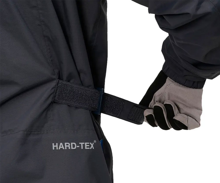 Водонепроникний костюм ідеальний для любителів позашляхового водіння і активного відпочинку на природі. Брюки з високою талією і регульований пояс на куртці забезпечують зручну посадку для носіння впродовж усього дня у будь-яку погоду. Залишайтеся сухими і захищеними під час ваших активностей на природі з цим універсальним костюмом. Міцна 2,5-шарова тканина RIPSTOP з мембраною HARD — TEX®. Покриття DWR. Усі шви і блискавки надійно проклеєні. Двосторонній регульований капюшон може бути складений в комір, коли не використовується. Двостороння блискавка спереду з вітрозахисною планкою. Дві просторі зовнішні кишені і одна внутрішня кишеня на куртці, одна кишеня на брюках. Регульовані манжети рукавів і брюк D- кільця для кріплення аксесуарів для риболовлі. Ергономічний крій колін і рукавів. Світловідбивні елементи 3М.