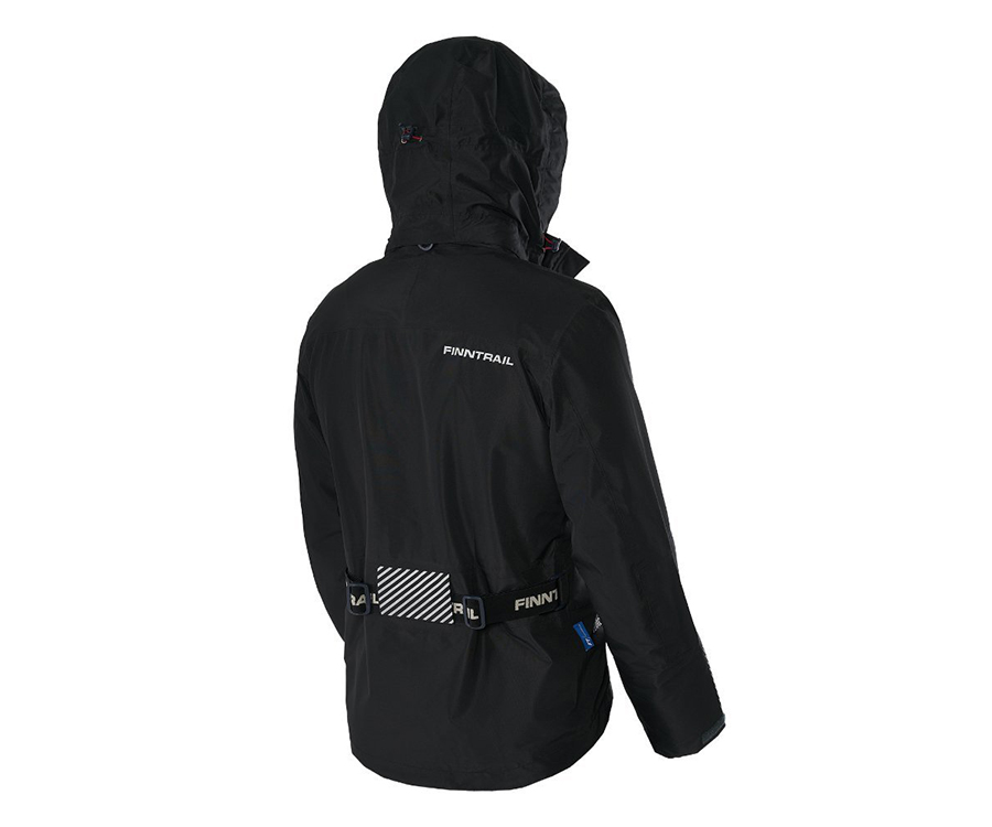 Finntrail Suit Thor Graphite – універсальний костюм з мембранної тканини «HARD-TEX». Куртка має капюшон, відстібається та регулюється за обсягом в двох площинах, дві внутрішні кишені з вологозахисними блискавками і дві зовнішні нагрудні кишені з вологозахисною тракторною блискавкою, стійкою до потрапляння бруду. Центральна двозамкова вологозахист тракторна блискавка, стійка до бруду і захищена клапаном з магнітною системою застібки. Куртка має комфортний флісовий воріт. Рукава забезпечені манжетами з прогумованого матеріалу, що перешкоджають затікання води в рукави. Куртка оснащена кулісою внизу для підгонки по фігурі, страхувальними кільцями для кріплення чеки, світловідбиваючими елементами для забезпечення безпеки в темний час доби. Штани мають дві великі накладні кишені та регулювання об’єму по низу брюк. Коліна мають 3D форму і не обмежують рухи. Штани оснащені високою теплою спинкою з підтяжками, що регулюються по довжині. Всі шви і блискавки костюма проклеєні.