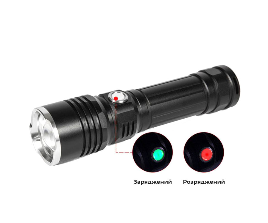 П’ять режимів освітлення: максимальний, середній, низький, стробоскопічний, аварійний (режим SOS). Порт USB дозволяє заряджати акумулятор та бути ліхтарю завжди готовим до використання, а завдяки захисту від перезаряджання та перерозрядження акумулятора, буде забезпечено його довготривале використання в безпечному режимі. Ліхтар має регульований фокус та бризкозахищений корпус. Також присутня індикація зарядки акумулятора. Завдяки міцній тактичній конструкції ви можете розраховувати на ліхтар в екстремальних умовах – це ідеальний вибір для кемпінгу, рибальства, мисливства й інших видів активного відпочинку. Перед першим використанням вийміть діелектричну прокладку , що вставлена в ліхтар для уникнення помилкового включення та розрядження акумулятора.