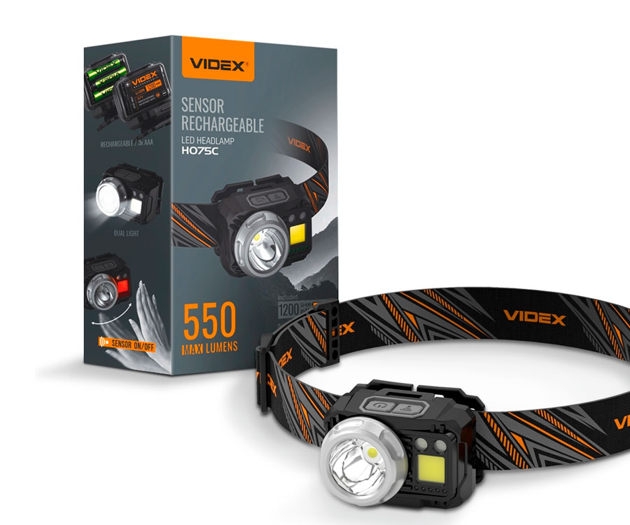 Налобний світлодіодний акумуляторний ліхтар Videx VLF-H075C 500 Lm 5000K призначено для індивідуального використання в темний час доби або в приміщеннях без освітлення. Розроблено спеціально для риболовлі, полювання, туризму, кемпінгу та занять активними видами спорту. Максимальна яскравість – 550 Lm. Регульований кут нахилу кріплення дає змогу вибрати зручний кут освітлення. Налобний ремінь виготовлено зі зносостійкого, м’якого за текстурою матеріалу. Кнопка сенсора допомагає увімкнути ліхтар і контролювати його режими жестами рук. Тривале натискання кнопки сенсора відображає заряд ліхтаря. Коротке натискання функціональної кнопки дає змогу перемикати режими роботи. Передбачено роботу від знімних акумуляторів і можливість роботи з трьома елементами типу ААА 1.5В (або акумулятора В12 1200 мАг). Доступна підзарядка за допомогою USB-C. Videx VLF-H075C відмінно захищений та адаптований для використання в складних та екстремальних умовах. Без проблем витримує механічне навантаження, падіння з висоти до 1,5 м. Має повний захист від пилу, сильного дощу і бризок. Стандарт захисту – IP65. Цей чудовий, сучасний, високоефективний ліхтар стане вашим незамінним супутником під час активного відпочинку.