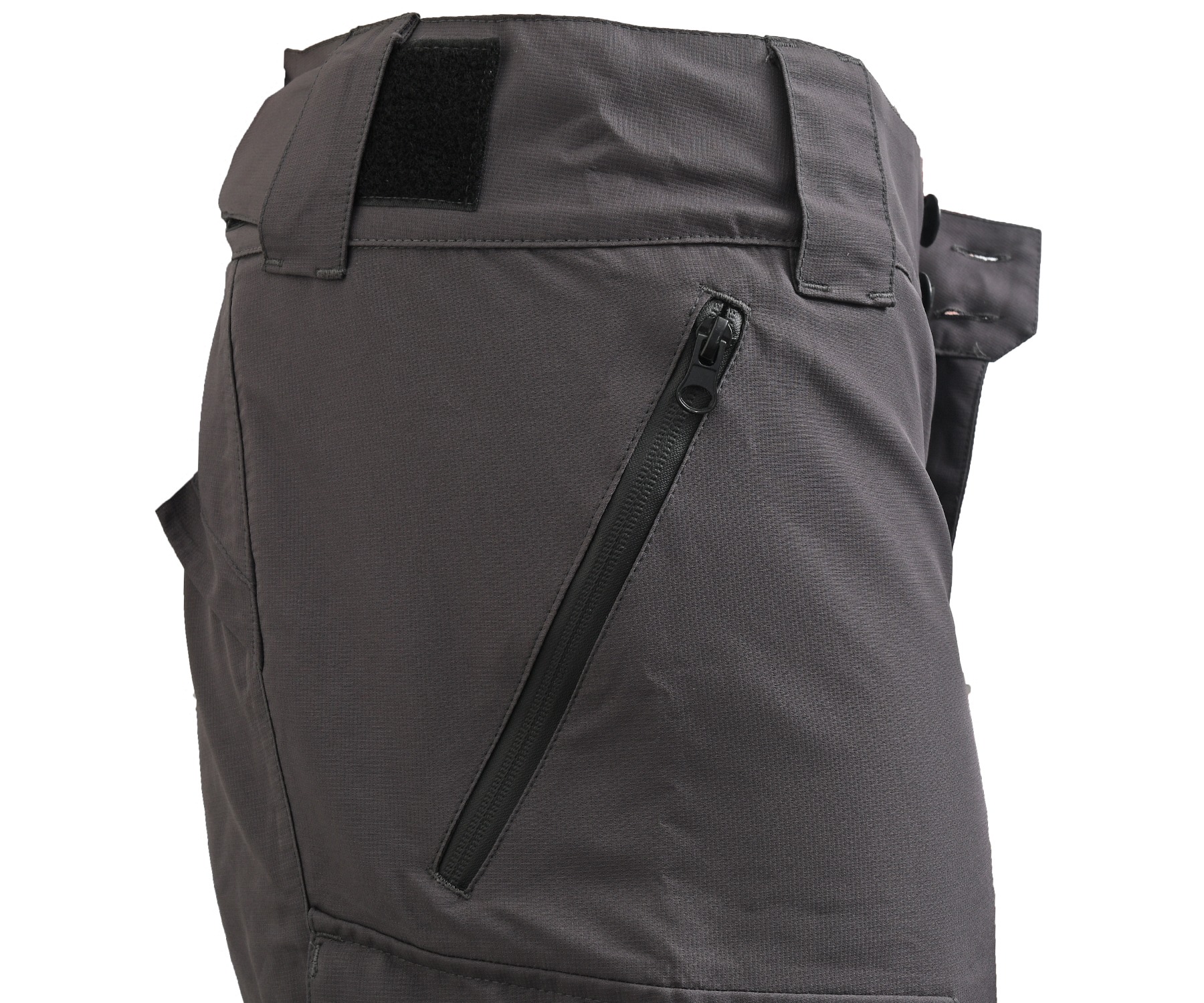 - Застібаються на два ґудзики на поясі та водонепроникну блискавку