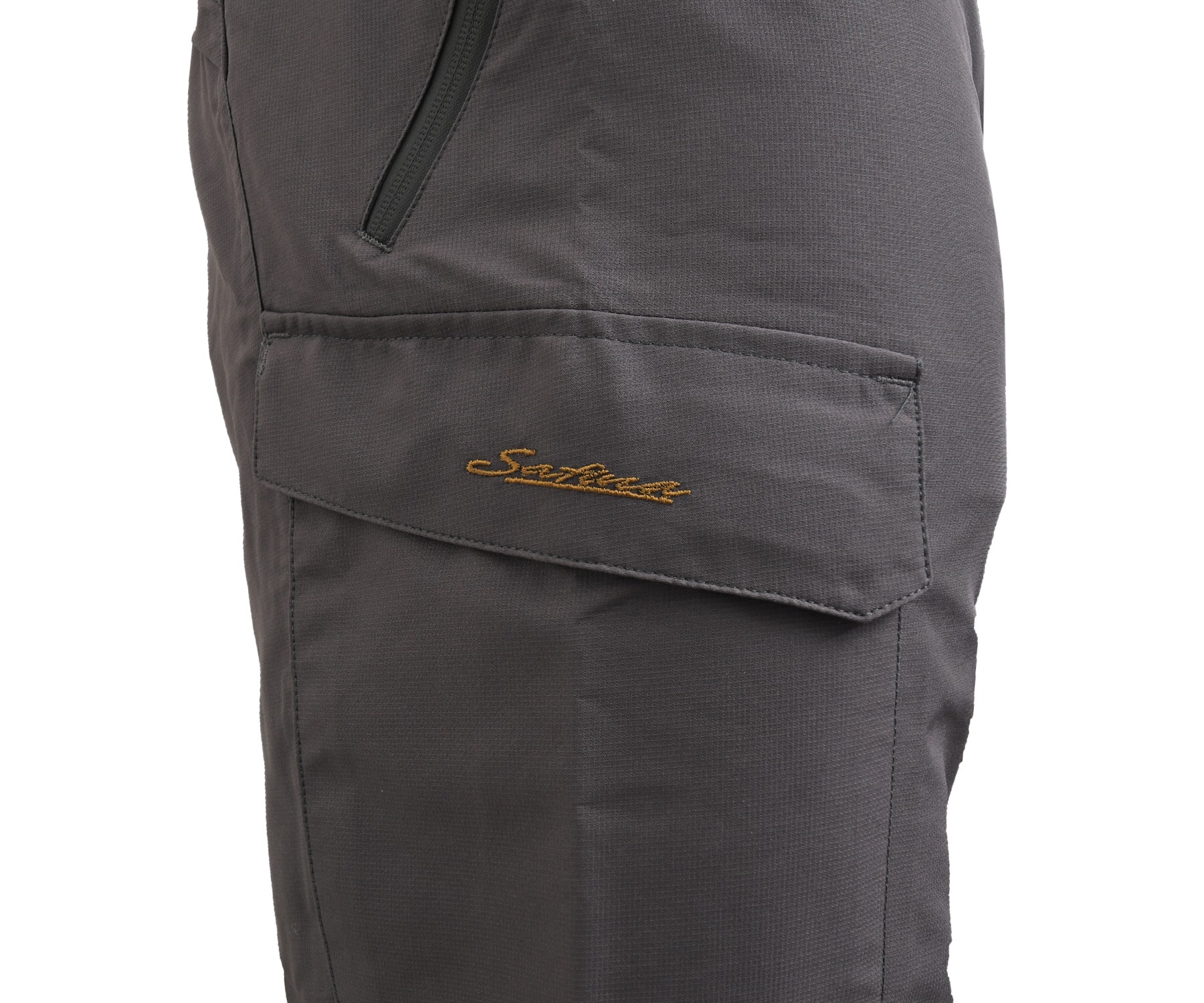 Azura Safina Storm Pants – легкі, зручні та водонепроникні мембранні штани нового покоління. Завдяки використанню сучасних матеріалів і технологій, вищий рівень якості штормового одягу тепер доступний кожному риболову, що вирушає на риболовлю за будь-якої погоди. Двошаровий мембранний матеріал штанів має ідеальне поєднання характеристик водонепроникності та дихаючих властивостей: штани не продуває вітром, у них сухо під будь-яким дощем, а випари від фізичних навантажень одразу виводяться назовні. Вільний крій і легкість штормових штанів Azura Safina Storm Pants гарантують максимальну зручність під час риболовлі та активних переміщень водоймою. Еластичний пояс застібається на 2 ґудзики, має спеціальну систему регулювання об’єму на липучці-велкро та оснащений петлями під ремінь, завдяки чому штани можна адаптувати під різні типи фігури. Ззаду під поясом розміщено вентиляційній отвір. Дві бічні та дві накладні кишені обладнано надійними водонепроникними блискавками. Ці штани зручно носити з будь-яким взуттям – від туристських черевиків до гумових чобіт – для чого в низ штанин вшито регулювальні блискавки. У конструкції виробу продумано кожну дрібницю: усі шви проклеєні, кишені водонепроникні та місткі, блискавки надійні, застібки довговічні. Забудьте про погану погоду та повністю зосередьтеся на риболовлі!